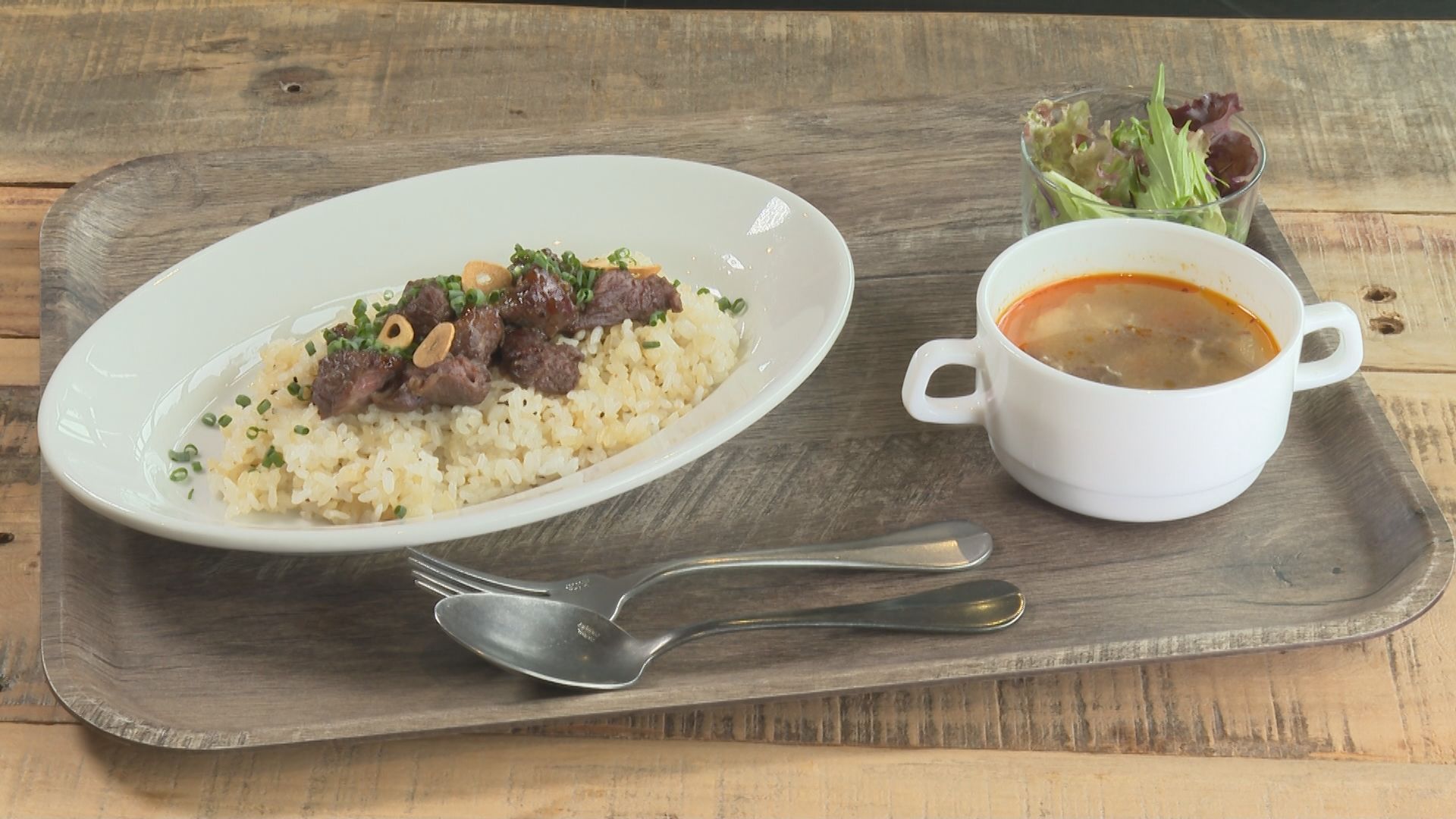 気力・体力の必要な職人の仕事。社員がランチを楽しみに仕事ができるようにとの思いを込めて、この日はステーキピラフが完成しました。