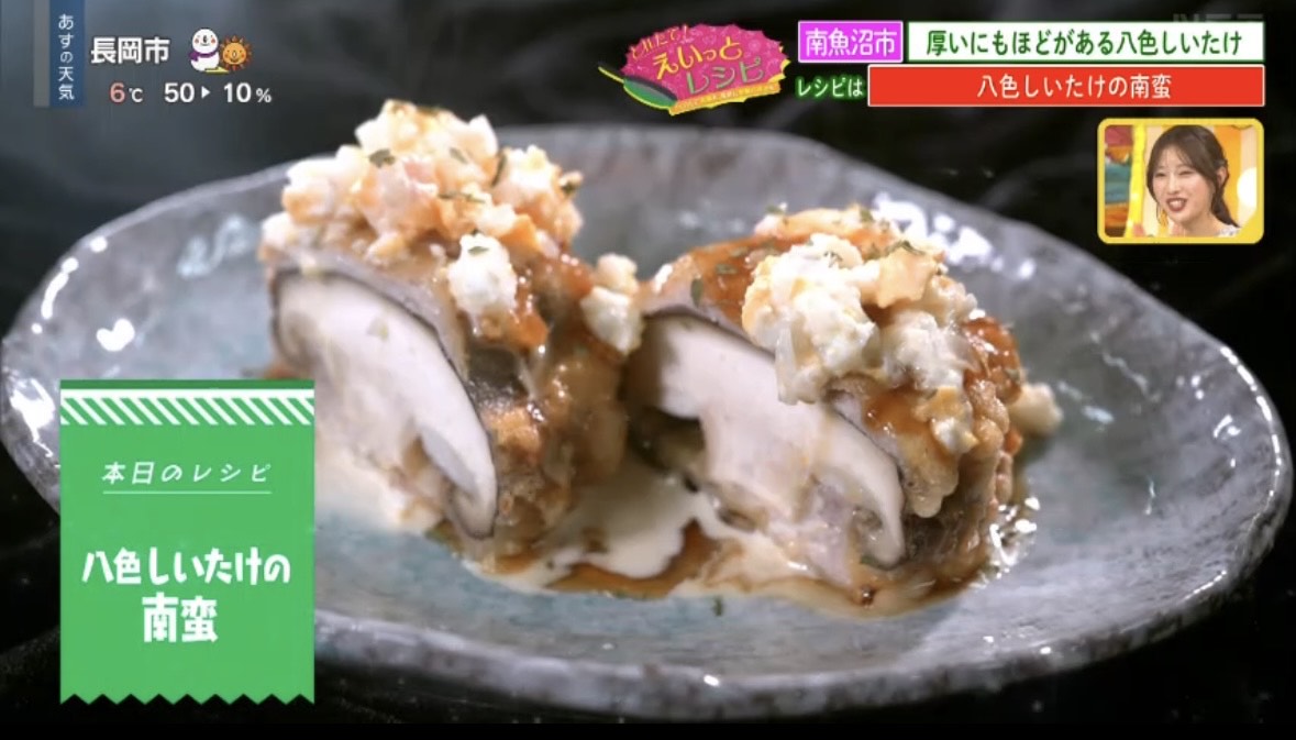 しいたけを使った「南蛮」のメニューをスタジオでいただきましたが、肉厚なシイタケがジューシーで衣と共にジュワっと旨味が広がる味わいに虜になりました。