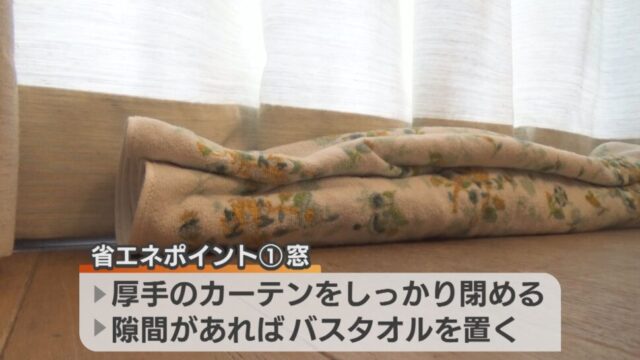 丸山さんは「冬は窓ガラスから外の冷気が入り込んで、せっかく暖めた空気が窓ガラスを通して逃げていってしまう」と指摘。このため、大切なのは、厚手のカーテンをしっかり閉めること!