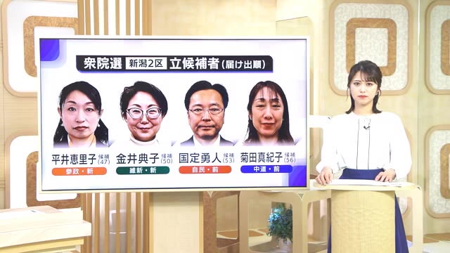 【新潟2区・第一声】参政・新人 平井恵里子氏/維新・新人 金井典子氏/自民・前職 国定勇人氏/中道・前職 菊田真紀子氏