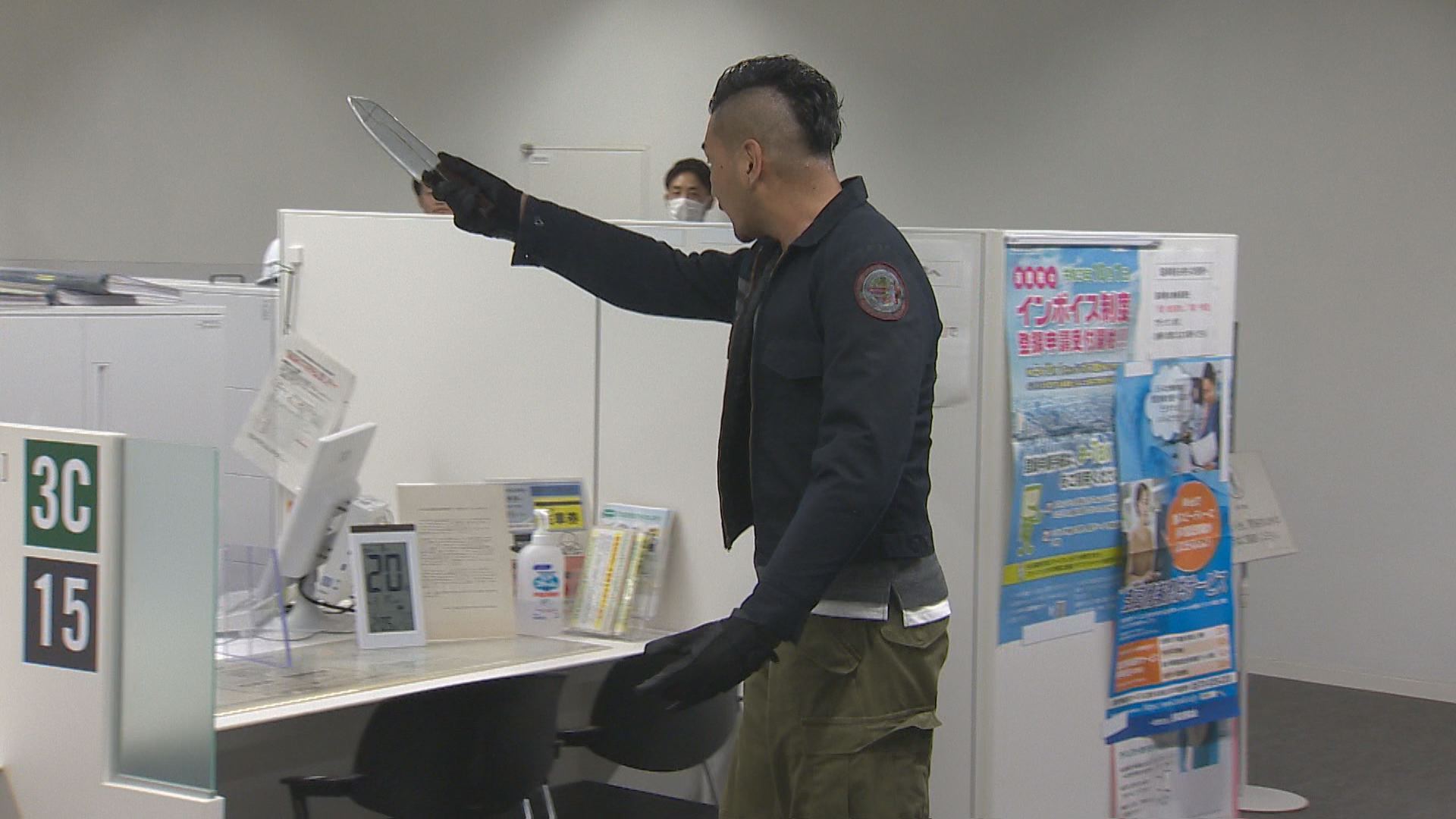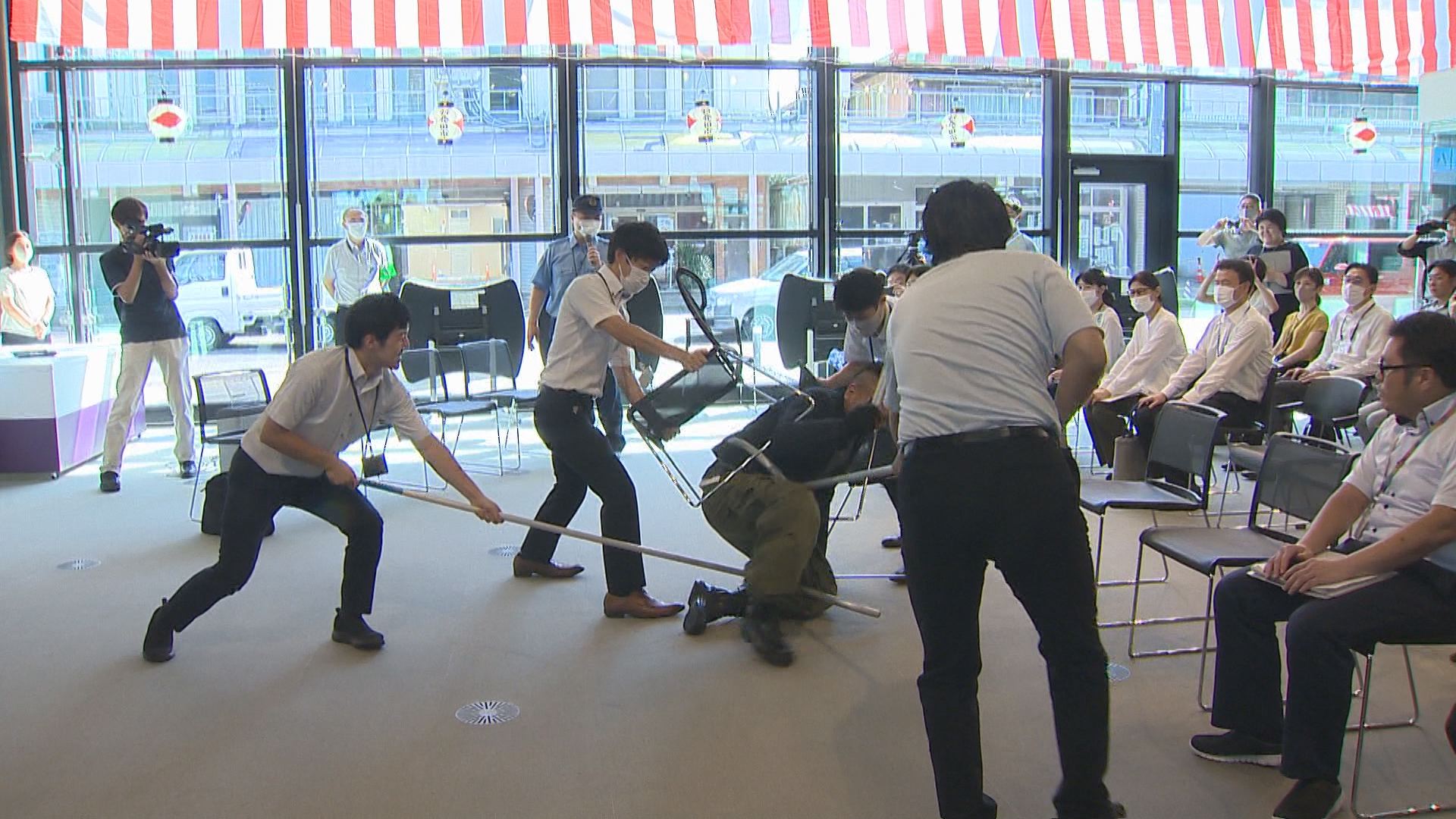 職員と市民を切りつけた男…職員たちは、“さすまた”や“いす”を使って男を取り押さえます。