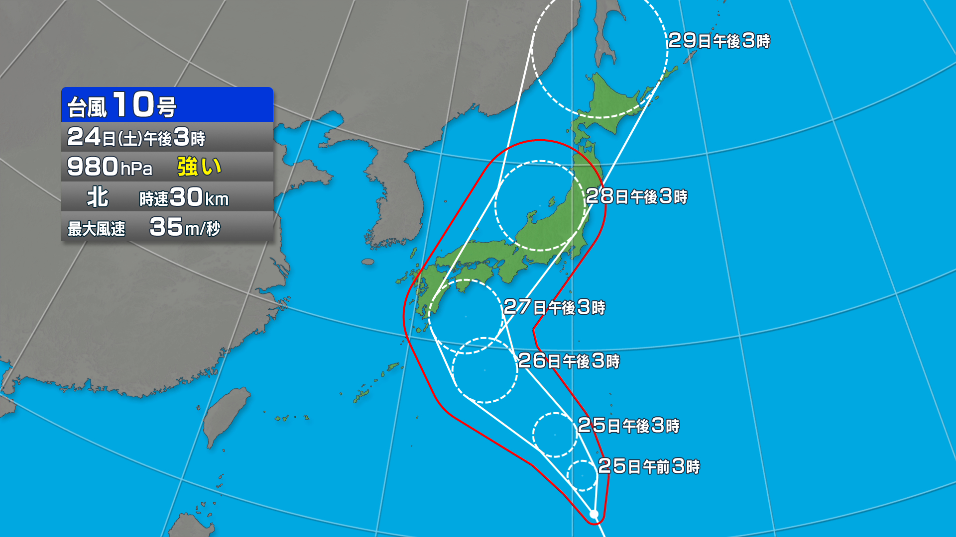 一方、台風10号は27日から29日にかけて日本を縦断する予想で県内を直撃する恐れがあります。