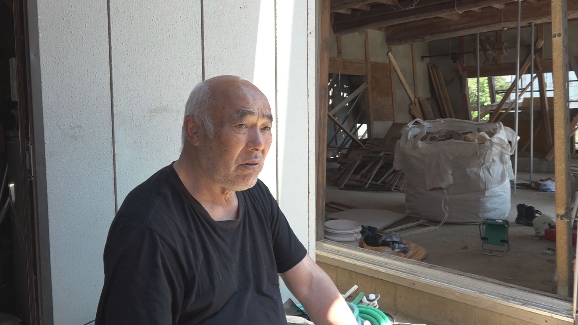7月、地震の発生から半年が過ぎても、母屋の中の修理はまだ途中だった。77歳の椎谷さん。農作業小屋を建て直すかは、今後家族と相談して決める考えだ。