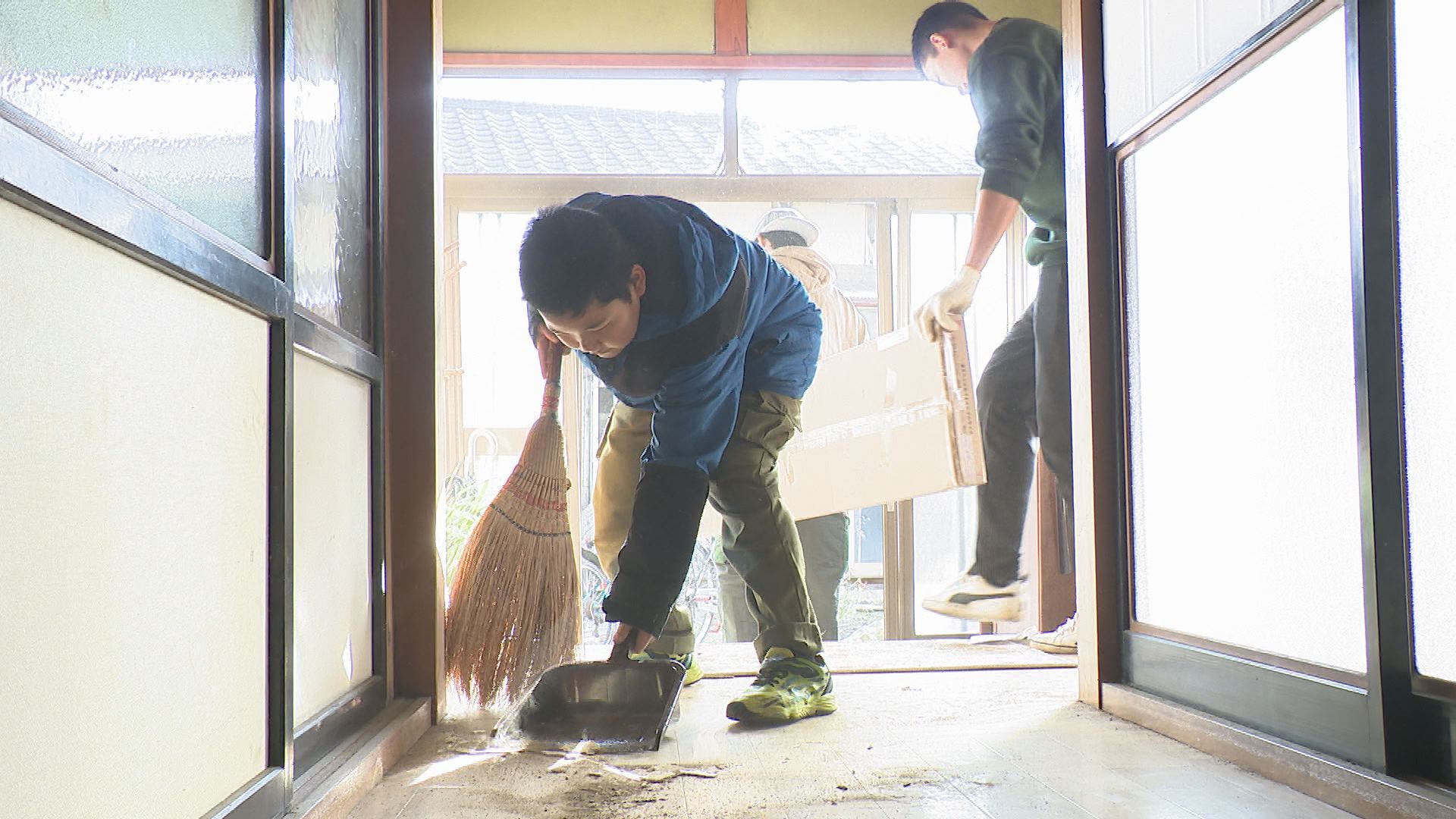 家族総出で地震の後片付けに追われる(今年1月)