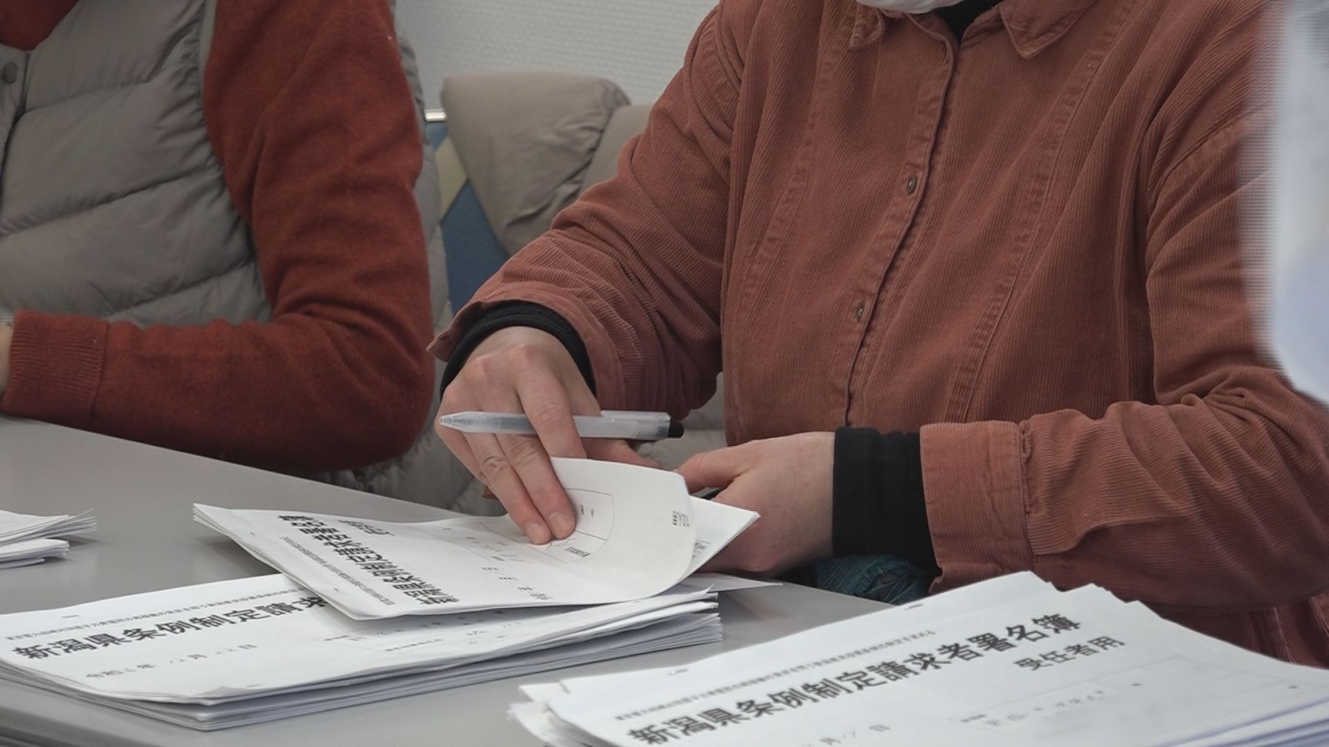 署名を集約する様子(28日 新潟市中央区)