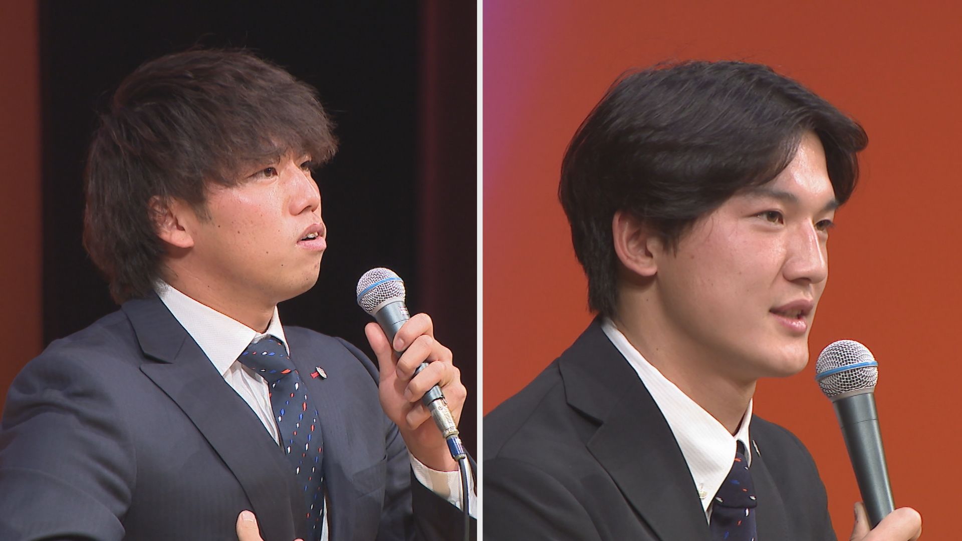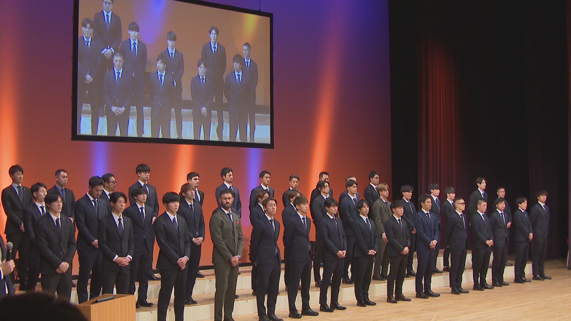 「きょうは自分のためにこんなに集まってもらって、本当にありがとうございます。すいません1年目から(座り位置の)センターをいただけるなんて思ってなくて」という挨拶で会場を沸かせたのが、熊本から完全移籍で加入したGK田代琉我だ。チームのムードメーカーとしてだけでなく、新たな守護神候補として名乗りをあげる。