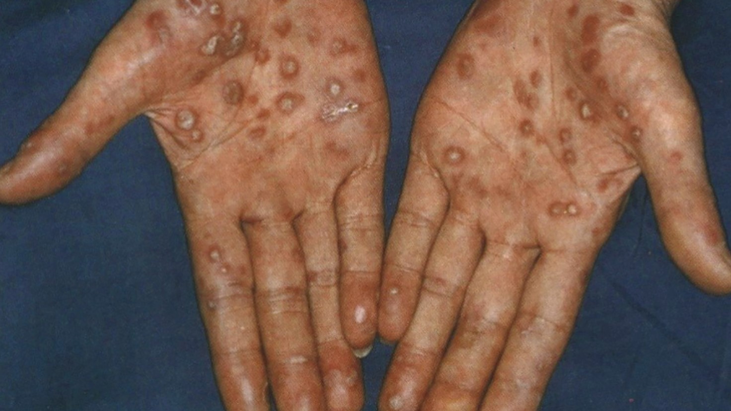 梅毒の症状は4段階(初期~4期)に分かれ、2期では全身や特定の部位に赤い発しんが現れ、3期では全身の炎症が悪化。