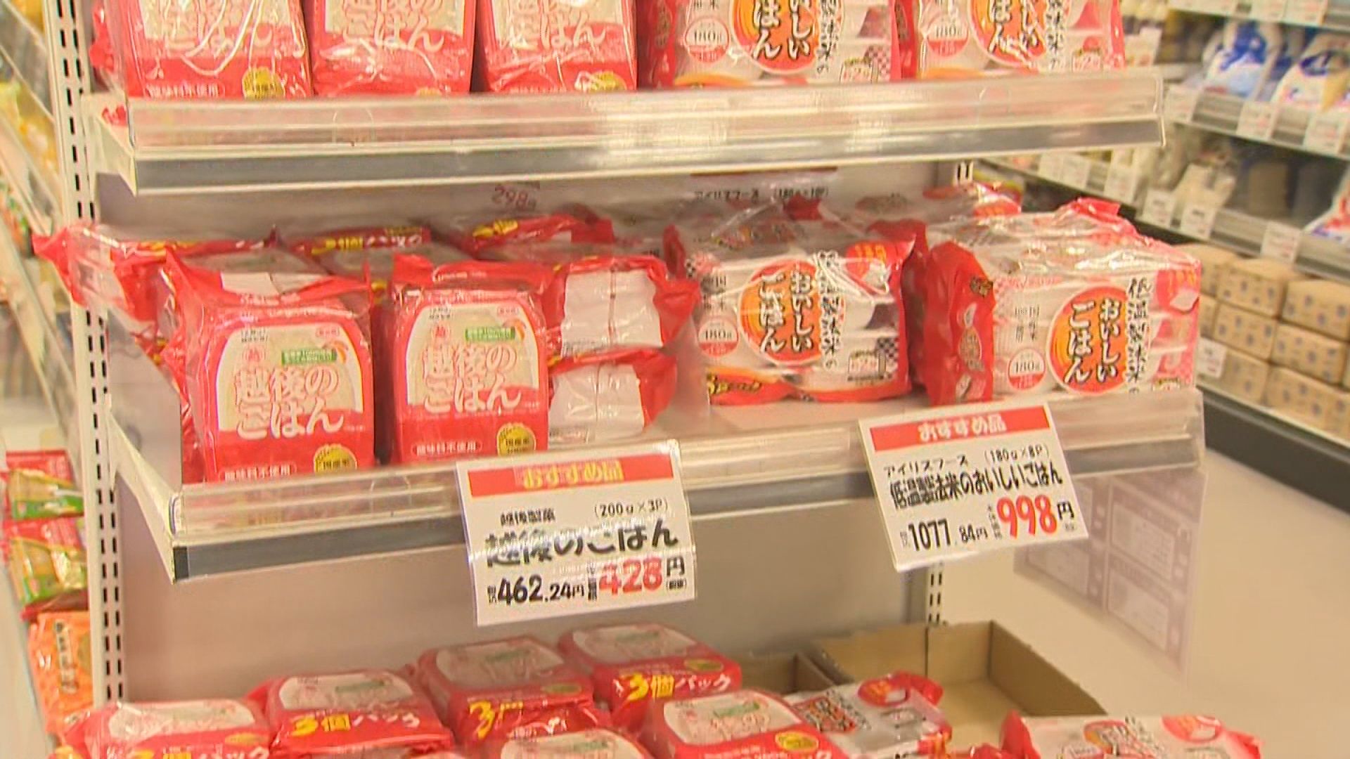 大雪が予想されていたため、買いだめを見越して日持ちしやすいカップ麺やパックごはんなどを通常の1.5倍ほど仕入れ、対応しているという湯沢町のスーパー。
