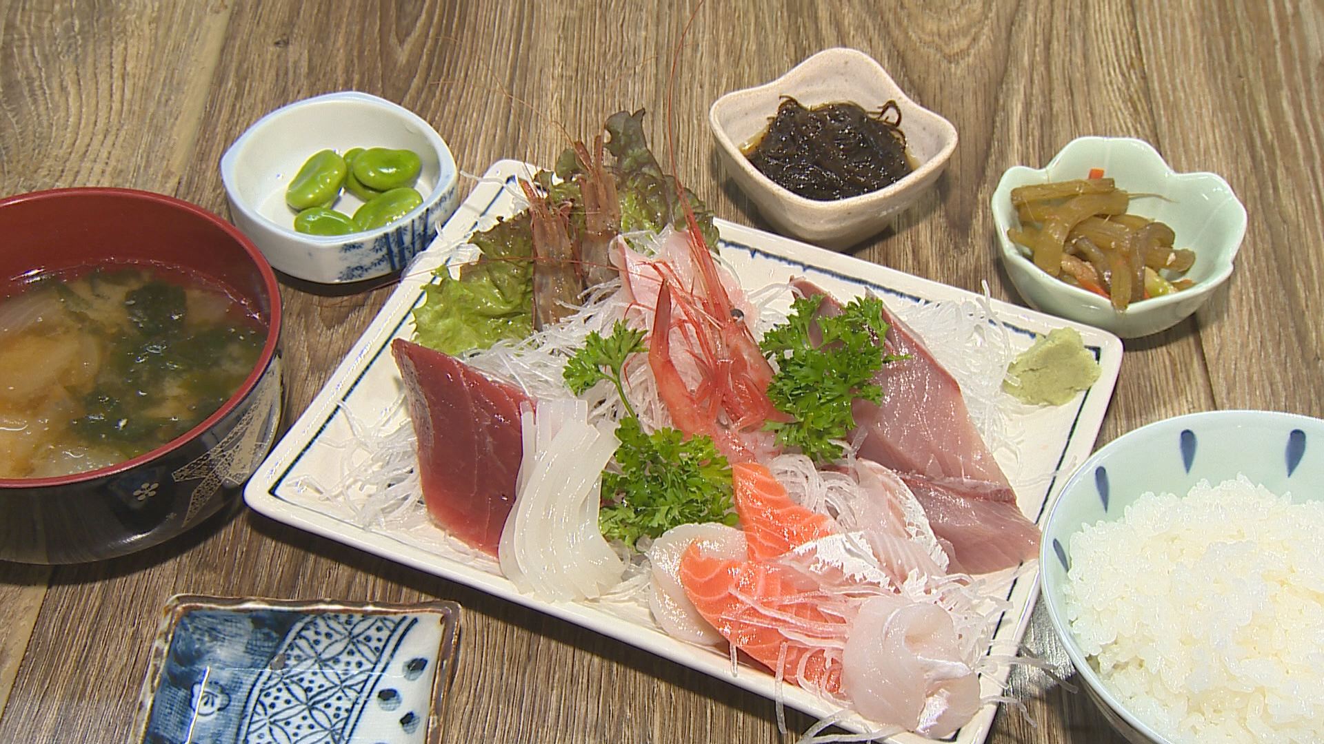 そんなこだわりの魚を使ったメニューの中で一番人気があるのは、その日に入った10種類ほどの刺身を味わうことができる贅沢な定食です。