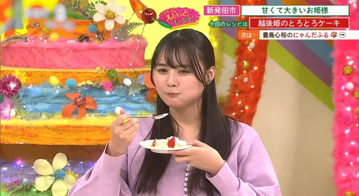 スタジオで試食をした、ゲスト・豊島心桜さんは「もっと食べたい!」というほど越後姫のとろとろケーキにぞっこんでした!