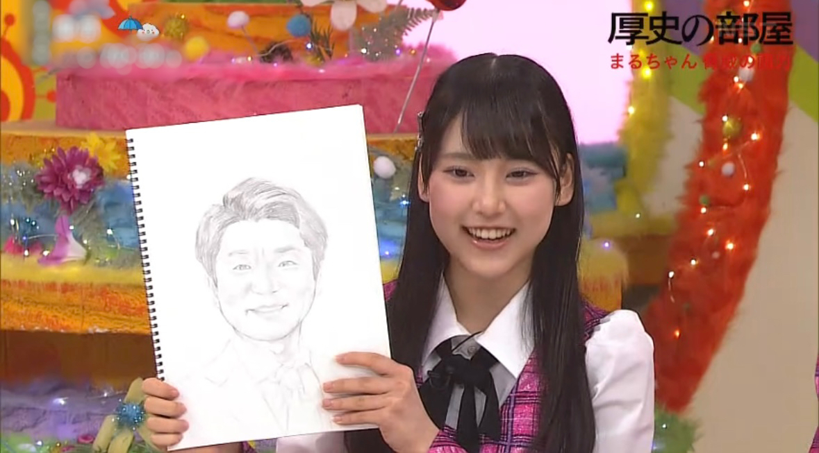 番組ミニコーナー「厚史の部屋」 丸山ひなたが飛田アナの似顔絵を披露!