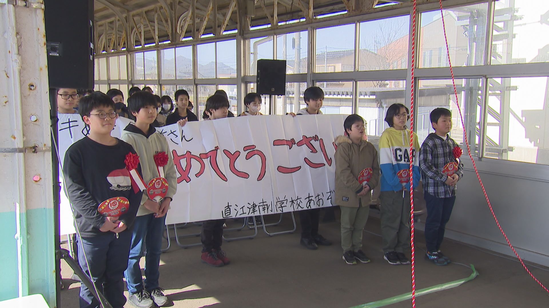 セレモニーで地元の小学生は今後への期待を込めたメッセージを披露した。