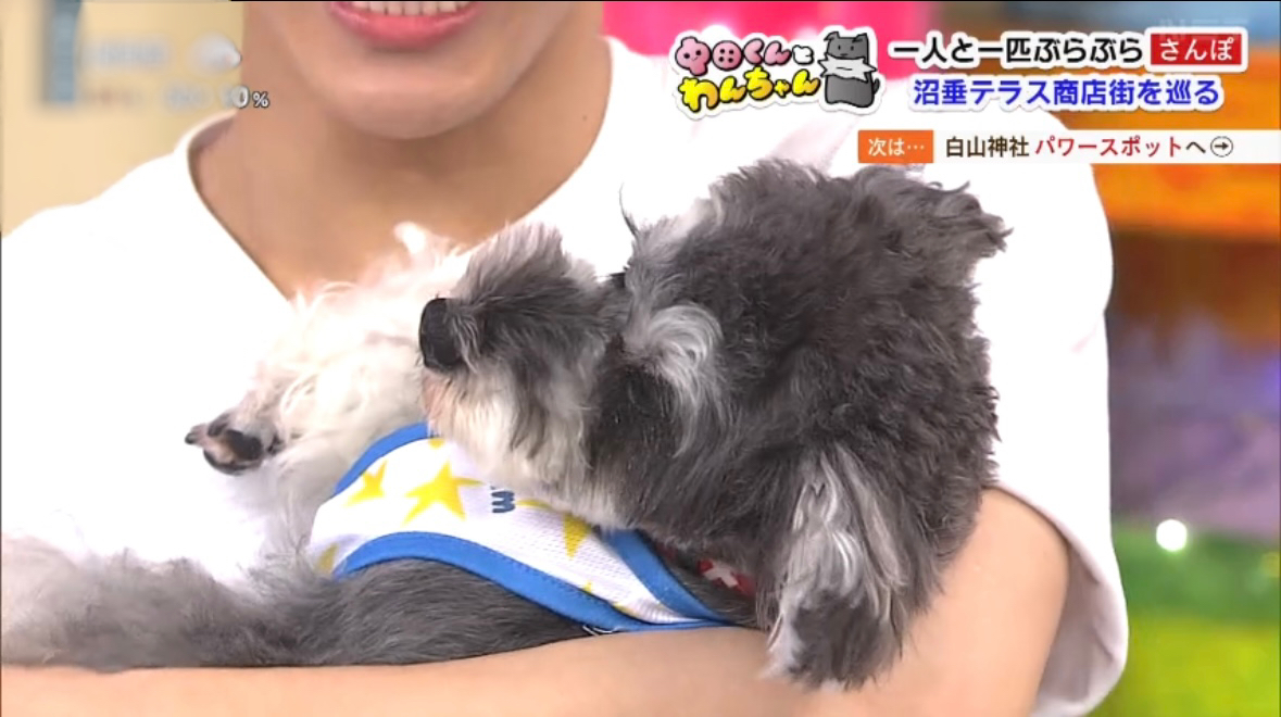 今回は恒例企画「黒田君とわんちゃん」ではなく、特別編「中田君とわんちゃん」!ということで、黒田さんに代わって、スマスタMC・中田エミリーさんが孔明くんとロケに行って来てくれました♪ファンの皆様に申し訳ないということで、今回のワイプは黒田さん“多め”でお送りしました。(笑)