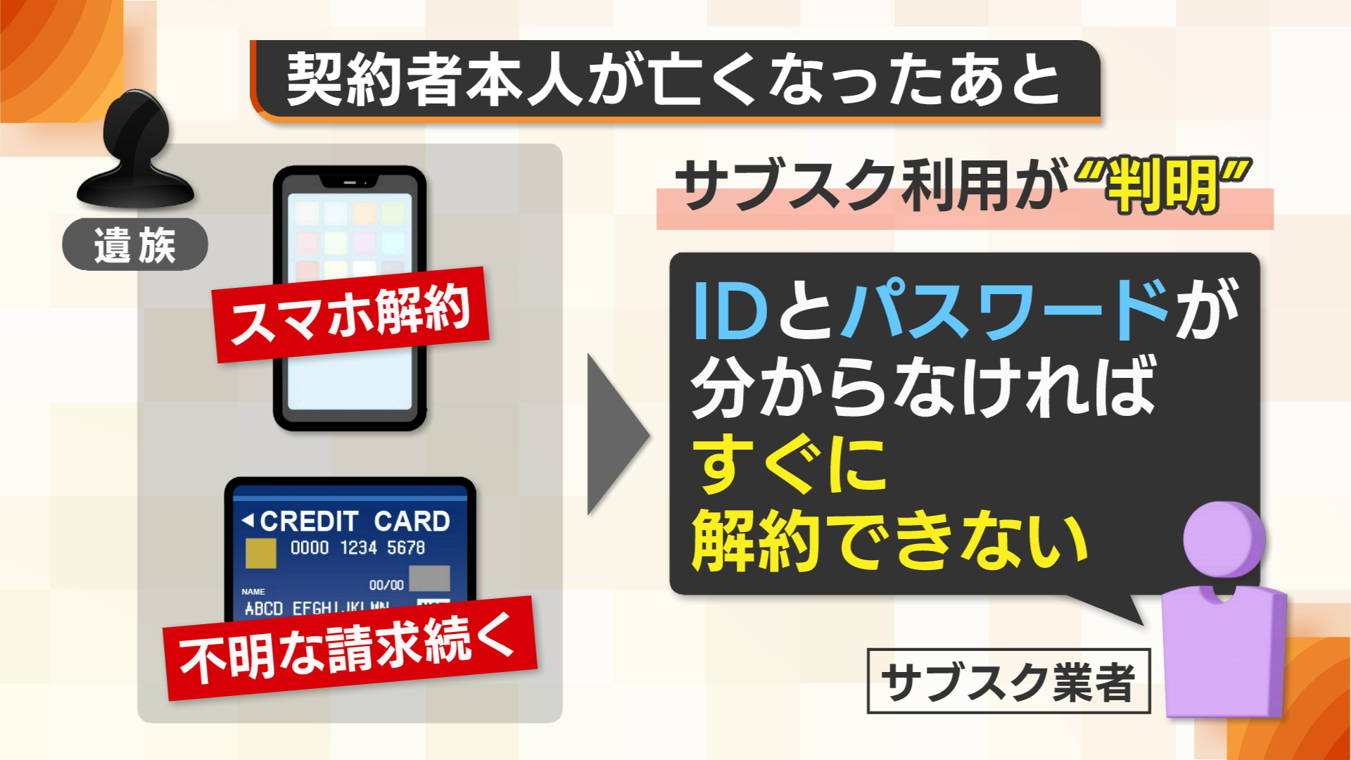 遺族としては、当然解約をしたいが、サブスク業者からは「IDとパスワードがわからなければ、すぐには解約できない」という説明があったという。