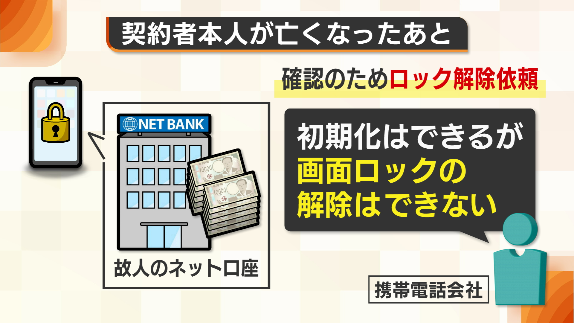 さらにこんなケースも。故人のネット銀行の口座を遺族が確認しようとしたところ、スマホにロックがかかっていて確認できず…。