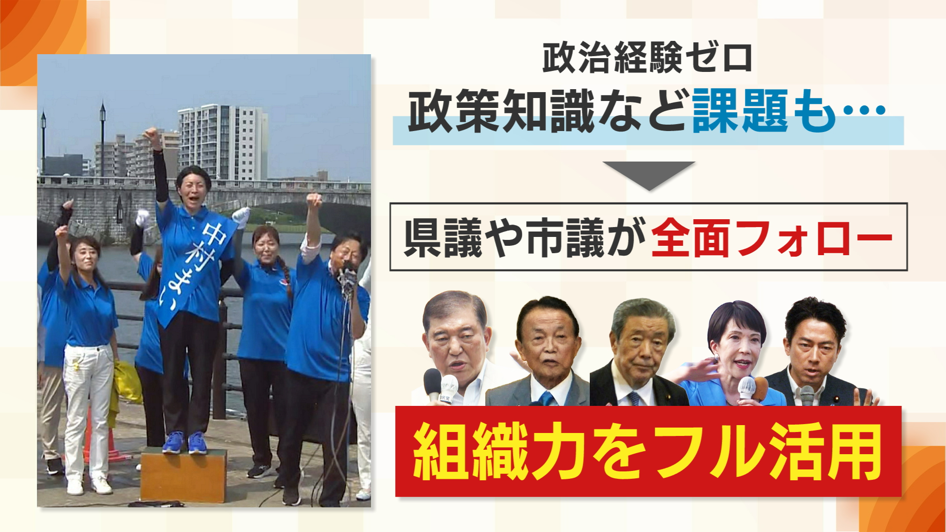 政治経験がない中、各地域の県議や市議などがフォローしたほか、石破首相をはじめ、連日党本部から大物が入り組織戦を展開。