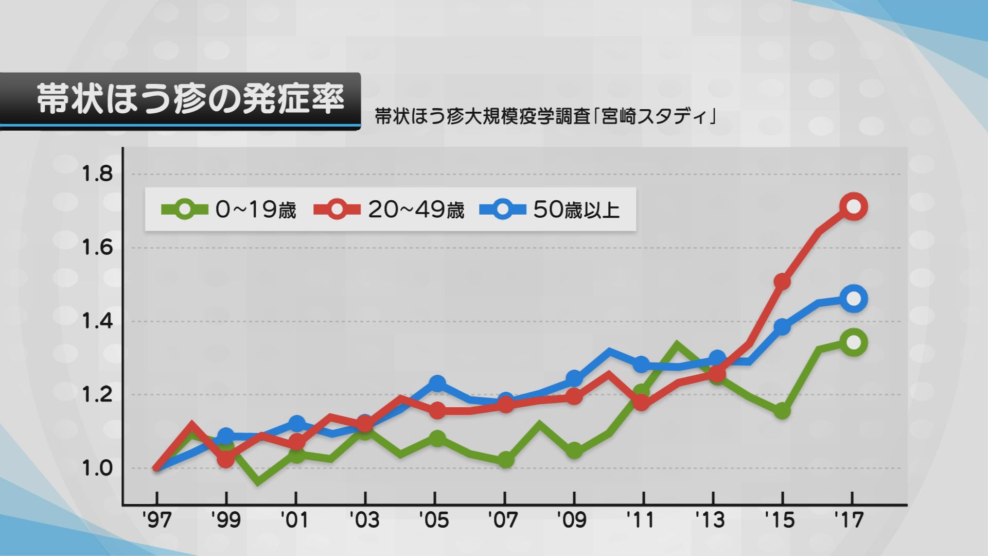 また、近年の傾向として問題視されているのが、若い世代の帯状疱疹も増加傾向にあることだ。
