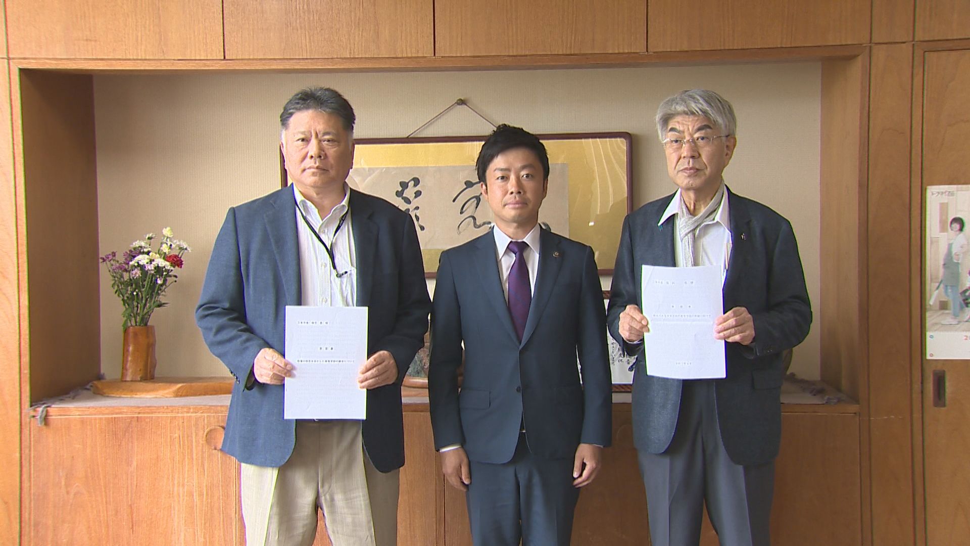 新潟県が2029年度に統合する計画を示している三条市にある三条商業と新潟県央工業。この統合計画について、両校の同窓会長が三条市の滝沢亮市長のもとを訪れ、地域の新たなリーダーを育成できるような学校づくりを要望した。