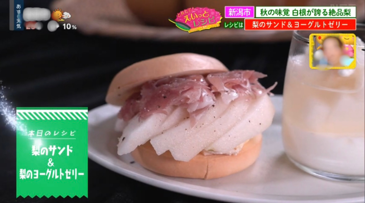 私もスタジオで試食しましたが、チーズや生ハムの塩味と梨の甘味のバランスが絶妙でとても美味しかったです。食感はシャキシャキで果汁もジューシー!