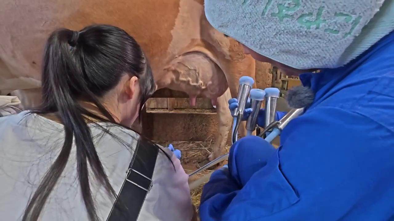 ミルクを出してもらうために脳に指令を与えるための本格的な搾乳前の手動での搾乳です。