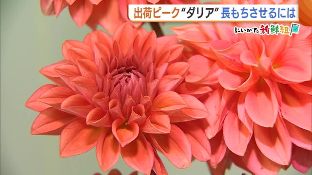 色とりどりの様々な種類があるダリアは花びらが多い“デコラ咲き”のものが人気で、今年は出荷量・価格ともに去年並みだといいます。