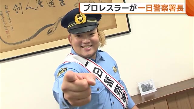 新潟県五泉市出身のプロレスラー・鈴木敬喜選手が10月14日、故郷で一日警察署長を務め、特殊詐欺などへの注意を呼びかけました。