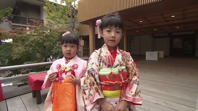 この日は華やかな和装姿の子どもたちが多く見られるなか、かつて親が着ていた思い出の着物を身につけた子どもの姿も。