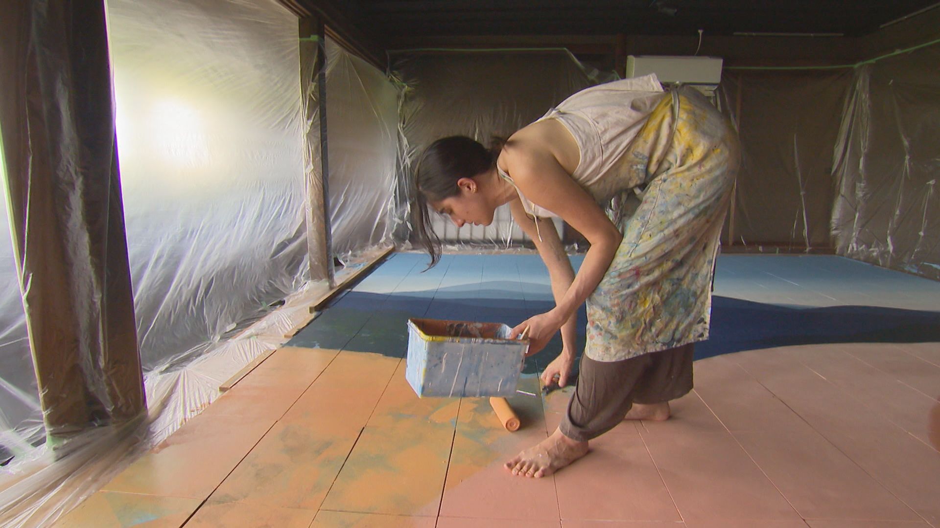 車中泊で全国を旅する29歳の女性画家がいる。その女性画家が1年間の定住先に選んだのは、新潟県弥彦村にある国登録の有形文化財『旧鈴木家住宅』だった。歴史的な古民家で暮らしながら描くのは、たたみ20畳分に広がる“巨大な絵”。2カ月の制作期間に女性画家が抱いた葛藤や迷い、そして完成後の思いに迫った。
