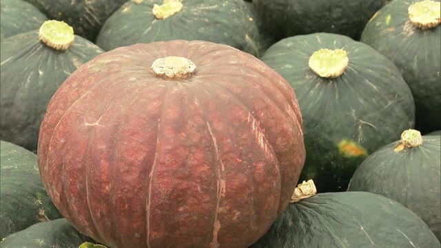 10月29日、新潟市西区の畑で収穫されていたのは秋の味覚『カボチャ』。