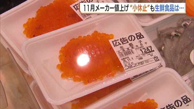 様々な物の値上げが続く今年。11月の主要メーカーの飲食料品に関しては、値上げは小休止となりそうです。しかし、スーパーでは、イクラの価格が去年の倍など生鮮食品の値上げが顕著になっています。
