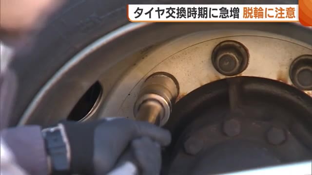 タイヤの交換時期に急増する車輪の脱落事故を防ごうと、北陸信越運輸局などが大型車のドライバーに注意を呼びかけました。
