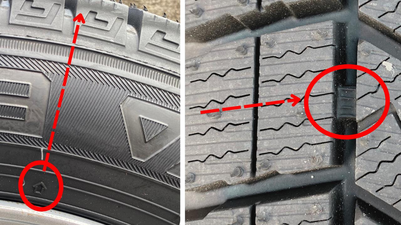 交換時期の目安としては、タイヤ側面の製造年表示や、溝の深さを示す「プラットホーム」の位置を確認します。
