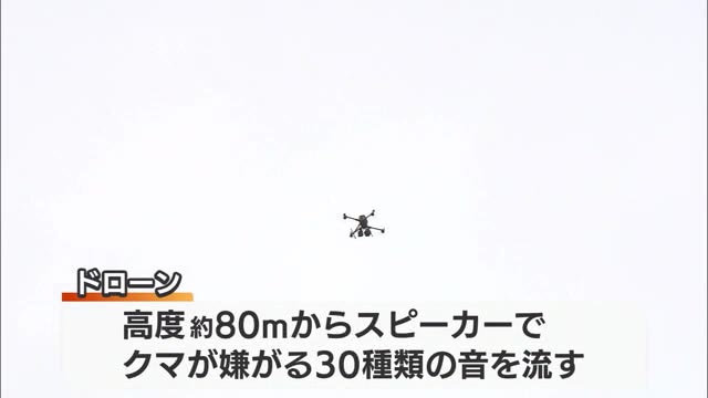 実験では業者がドローンを上空およそ80メートルに飛ばし、搭載したスピーカーからクマが嫌がる犬の鳴き声など30種類の音声を流しました。またドローンには追い払うクマを確認するため生き物の体温を捉える赤外線カメラも搭載していて、クマの動きから音の効果を検証します。