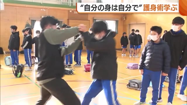 自分の身は自分で守る力をつけ、危機に備えてほしいという理由で開催されたこの授業。この日は、6年生の児童が参加し、腕の振り解き方などを学んでいました。