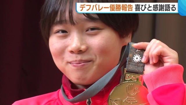11月の聴覚障害者の国際スポーツ大会・デフリンピックで見事優勝を果たした女子バレーボール。勝利に貢献した中越高校の高橋朋伽選手が全校生徒を前に喜びを語りました。