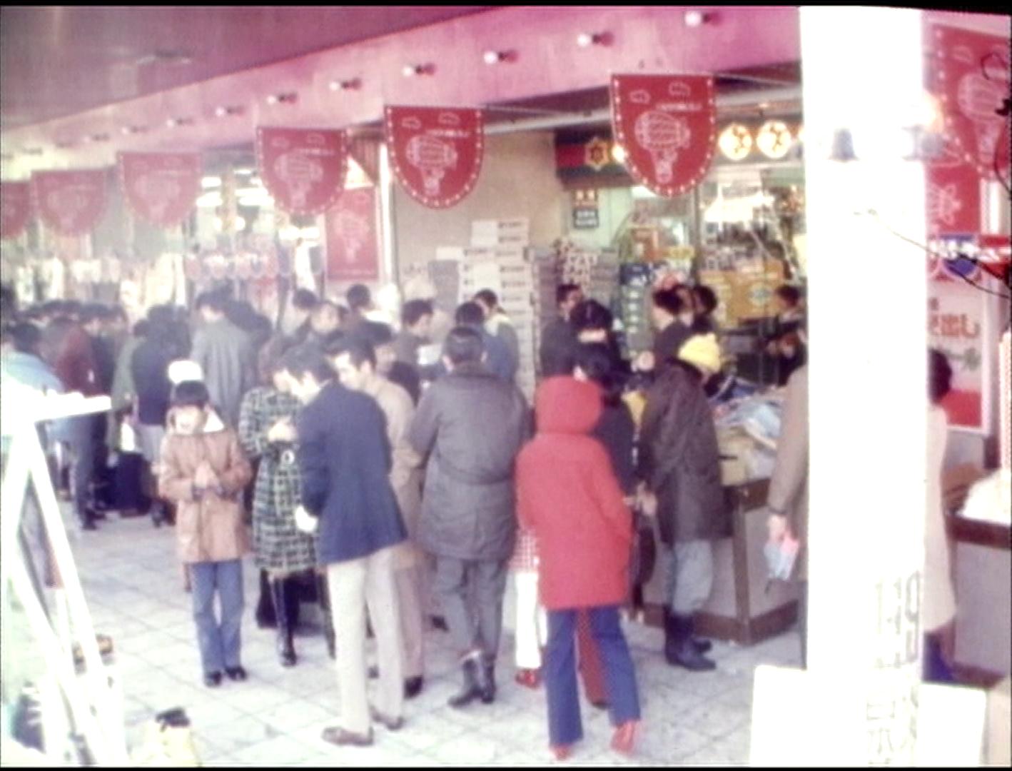 このデパートでは、ボーナス商戦等の売り出し時期には屋外でも売り場を作り、建物の外まで買い物客でごった返していた。