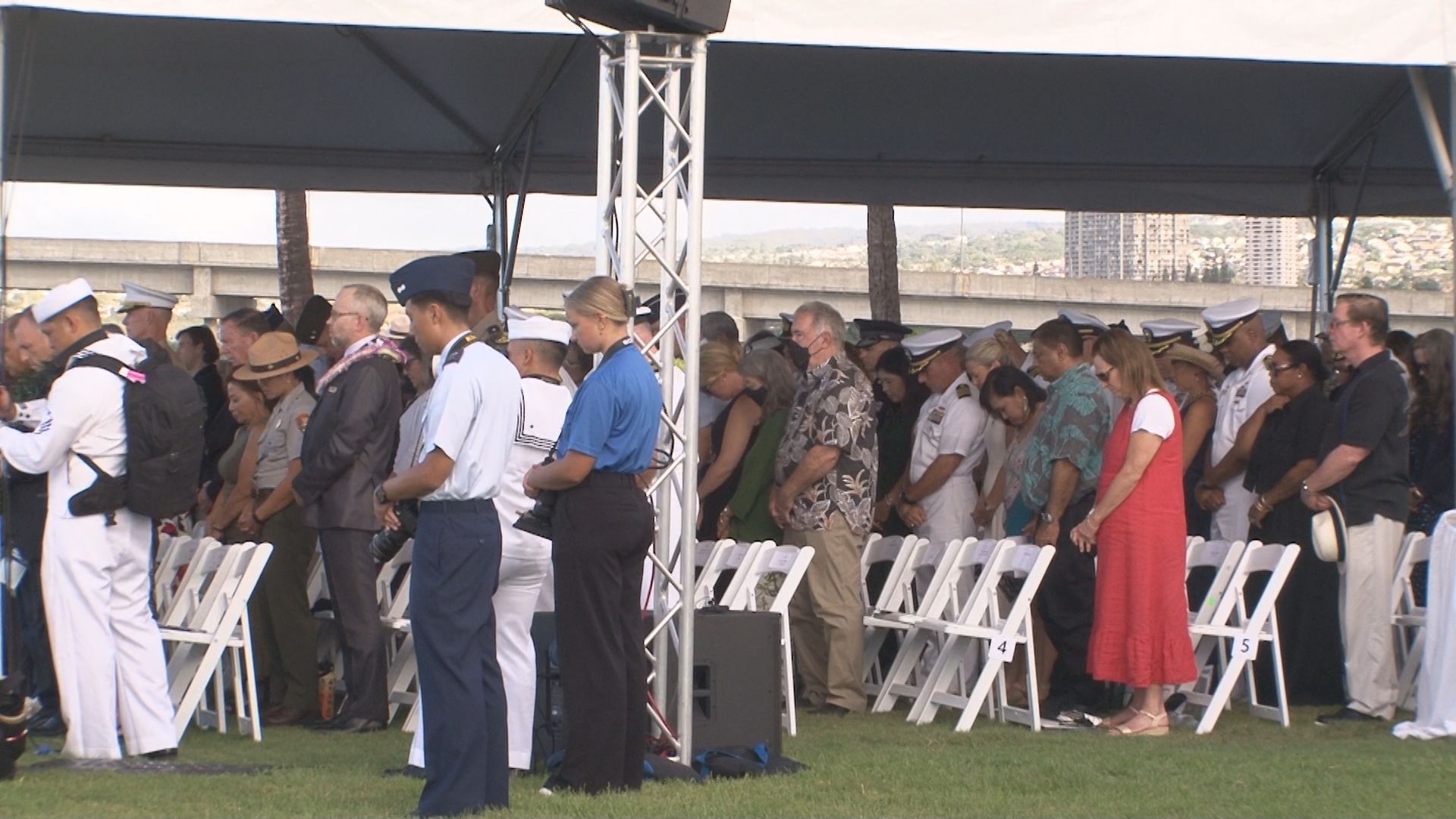 式典では、攻撃が行われた午前7時55分に合わせて戦没者を悼み、黙とうが捧げられた。