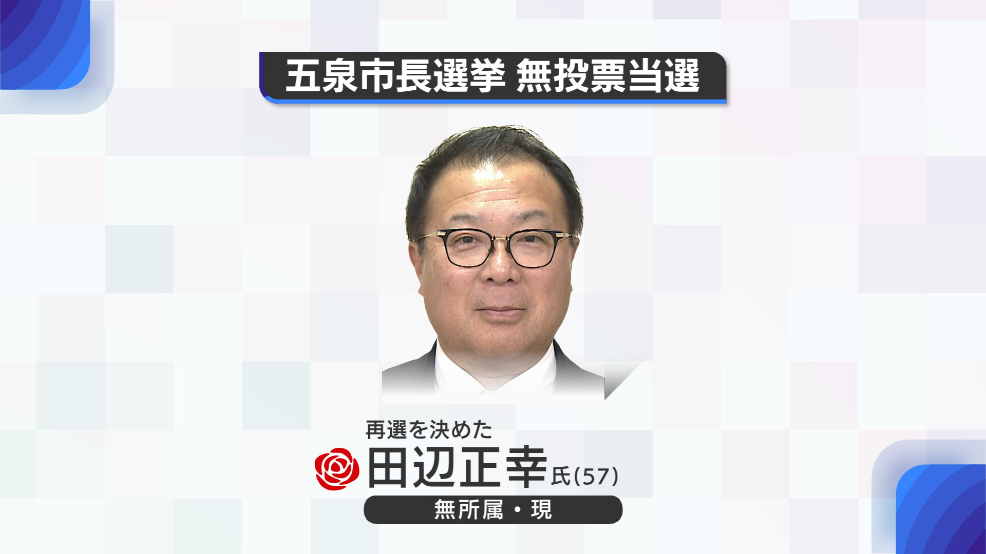 任期満了に伴う五泉市長選挙で無投票で当選を決めたのは、無所属で現職の田辺正幸さん(57)です。