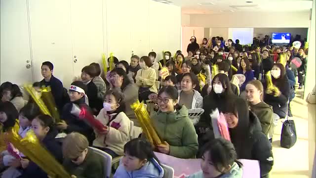 地元・新潟市のスケートリンクには、選手やスケート関係者など約80人が集まり、演技を見守ります。