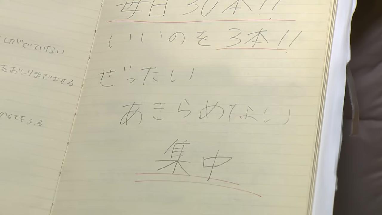 そして、練習ノートには「絶対にあきらめない」という言葉が力強く書き込まれていた。