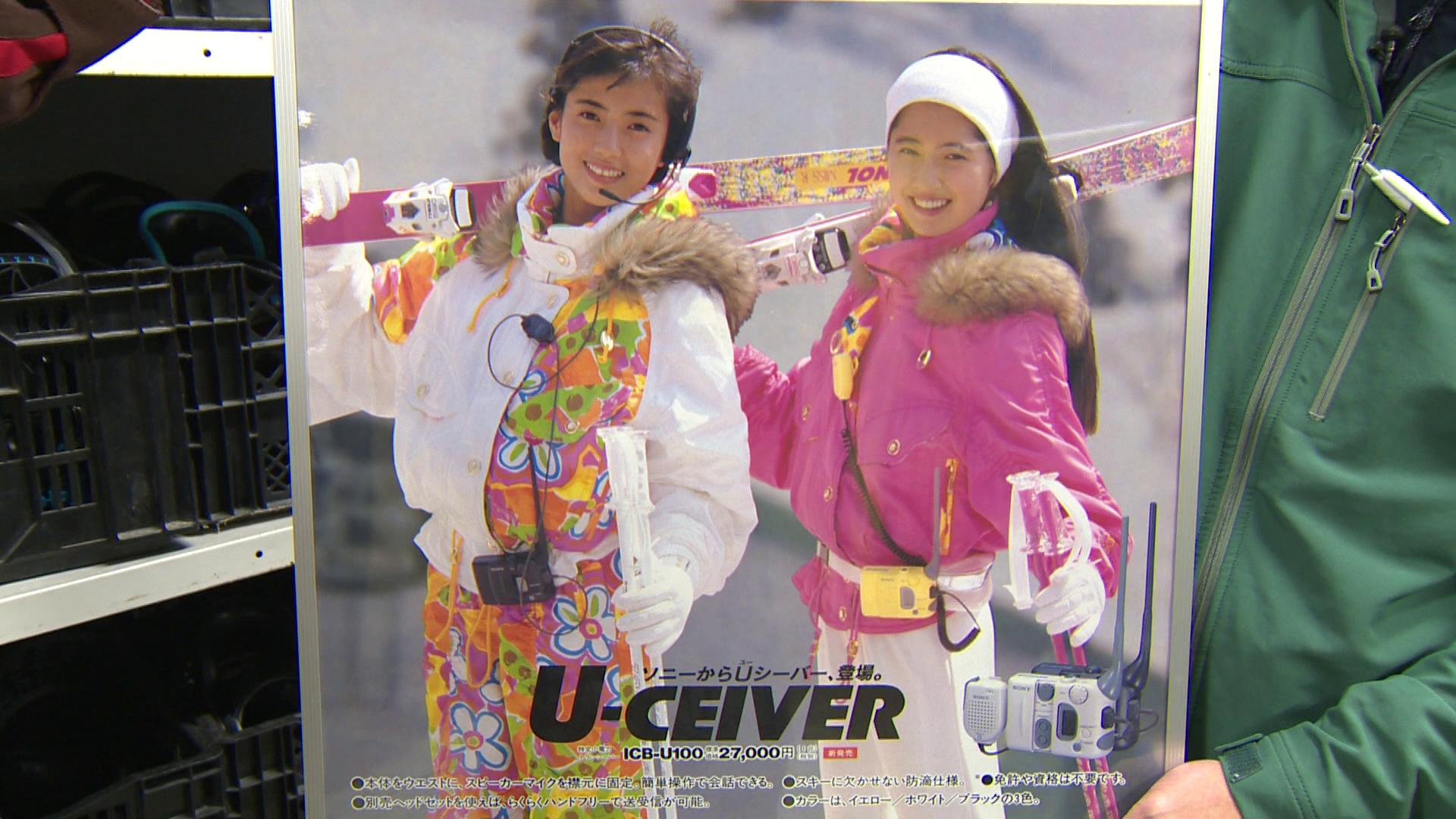 ファッションにも“時代の空気”が見える。スキーウエアはぴったりとしたパンツと細身の上着が流行っていた。また、上級者の間では、上着は着ずに“スキーセーター”を着て滑るのがオシャレだったようだ。